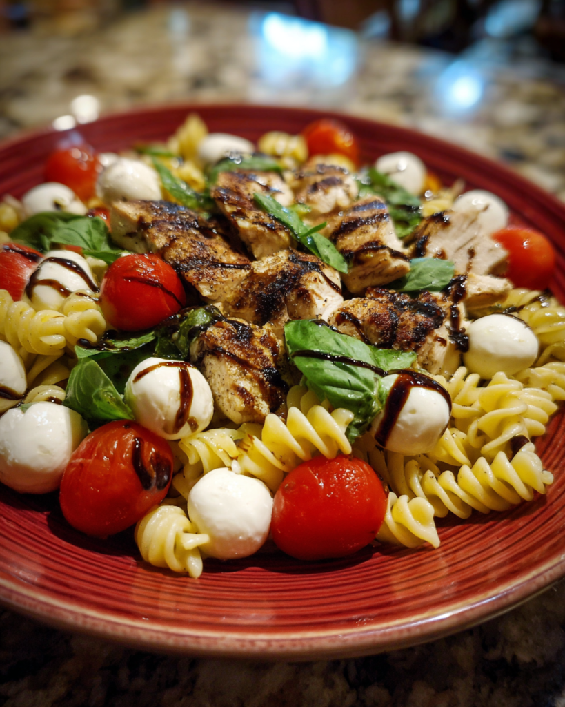 Chicken Caprese Pasta Salad brings together Italian caprese flavor with hearty pasta and tender chicken. Juicy tomato, creamy mozzarella, fragrant basil, and a light balsamic touch create a refreshing dish that feels both satisfying and bright. Each forkful combines soft pasta with savory chicken and bursts of tomato. Fresh basil adds herbal fragrance while mozzarella pearls provide smooth creaminess that balances the tangy dressing. The combination delivers contrast in texture without heavy sauces. This salad works well for warm afternoons, family meals, potlucks, or casual gatherings. It travels well and keeps flavor after chilling, which helps the ingredients blend together … Read more