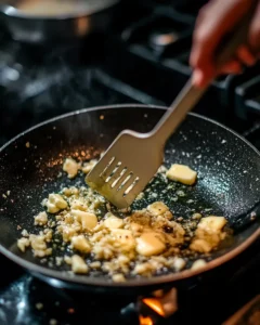4.Next, place a large skillet over medium heat and add the olive oil and butter. Let the butter melt completely, swirling the pan gently so the fats combine. This blend creates a rich, flavorful base without being too heavy. Once melted and lightly shimmering, add the minced garlic. Sauté for about 30 seconds, stirring constantly, just until fragrant. Be careful not to brown the garlic, as it can turn bitter if overcooked.