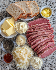 Irresistible Reuben Sandwich with Homemade Russian Dressing Melty Cheesy Bliss lives up to its name. The crisp rye bread contrasts beautifully with tender corned beef and tangy sauerkraut, while the creamy dressing and melted Swiss cheese bring everything together in harmonious balance.