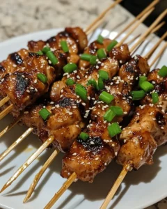 Juicy marinated chicken skewers with a sweet-savory glaze, grilled to perfection for homemade takeout vibes.