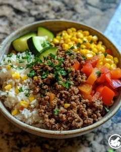 A hearty and comforting bowl made with seasoned ground beef, tender vegetables, and fluffy rice, perfect for busy weeknights.