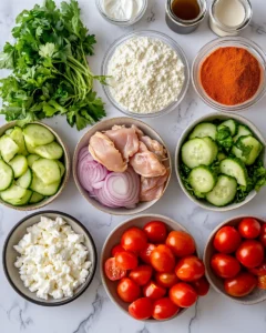 Start by preparing the marinated chicken, which will be the star of this salad. In a medium bowl, combine olive oil, ground cumin, paprika, coriander, turmeric, garlic powder, onion powder, salt, black pepper, and freshly squeezed lemon juice. Whisk these ingredients together to create a fragrant, well-balanced marinade. The combination of spices gives the chicken a warm, aromatic flavor, while the lemon juice tenderizes the meat and adds a bright, zesty note.